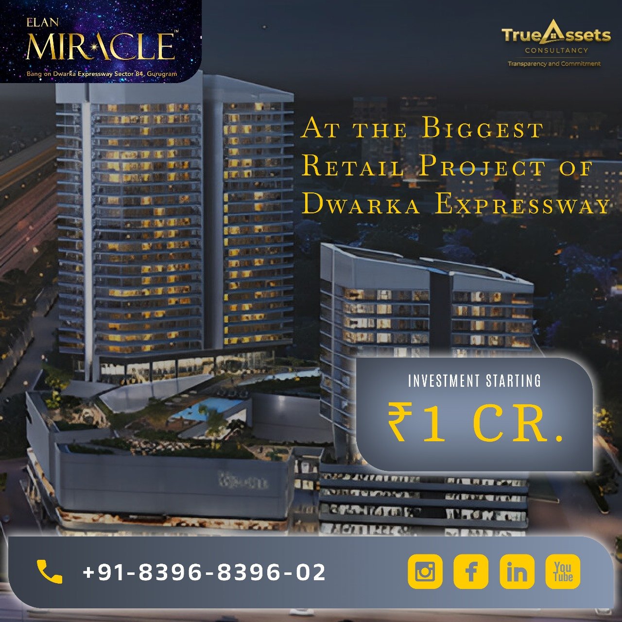 If you’re seeking to invest in an area that provides high-end luxury as well as a strong return, Elan Miracle — managed by TrueAssets Consultancy — is an excellent choice.